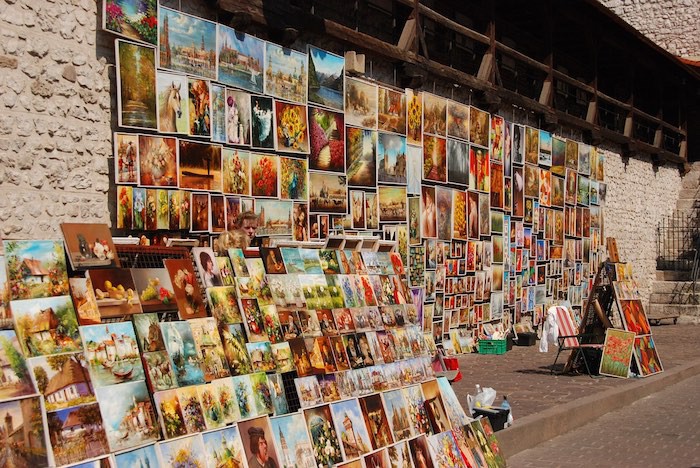Jeżeli zwiedzasz Kraków wiosną, latem lub wczesną jesienią, masz szczęście! Przechodząc przez bramę Floriańską po prawej stronie zauważysz ścianę prawie w całości pokrytą dziesiątkami obrazów namalowanych przez lokalnych artystów. Nad samą bramą zobaczysz mały pomnik św. Floriana, patrona miasta.