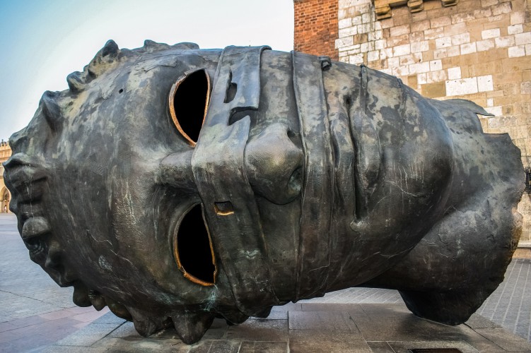 Tak zwana głowa Mitoraja stojąca na Rynku od początku budziła kontrowersje, ale szybko stała się jednym z najczęściej fotografowanych miejsc w Krakowie. Autor rzeźby wyjaśnił, że rzeźba Erosa spętanego (bo to właśnie oznacza jej tytuł) to wyraz miłości, która nie może w pełni się rozwinąć.